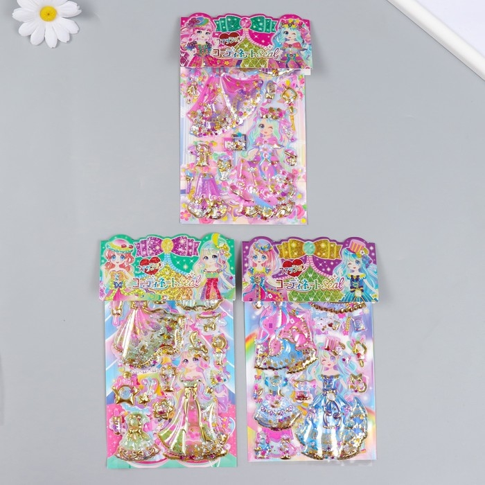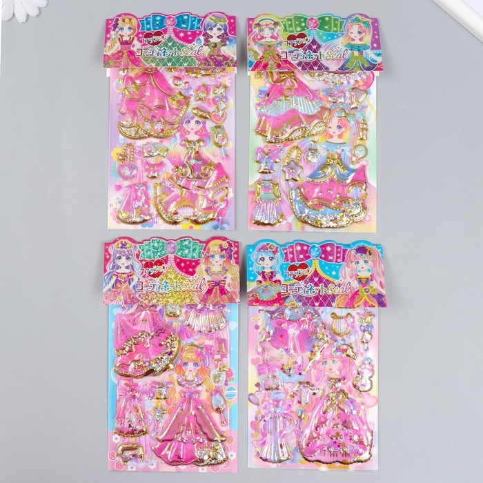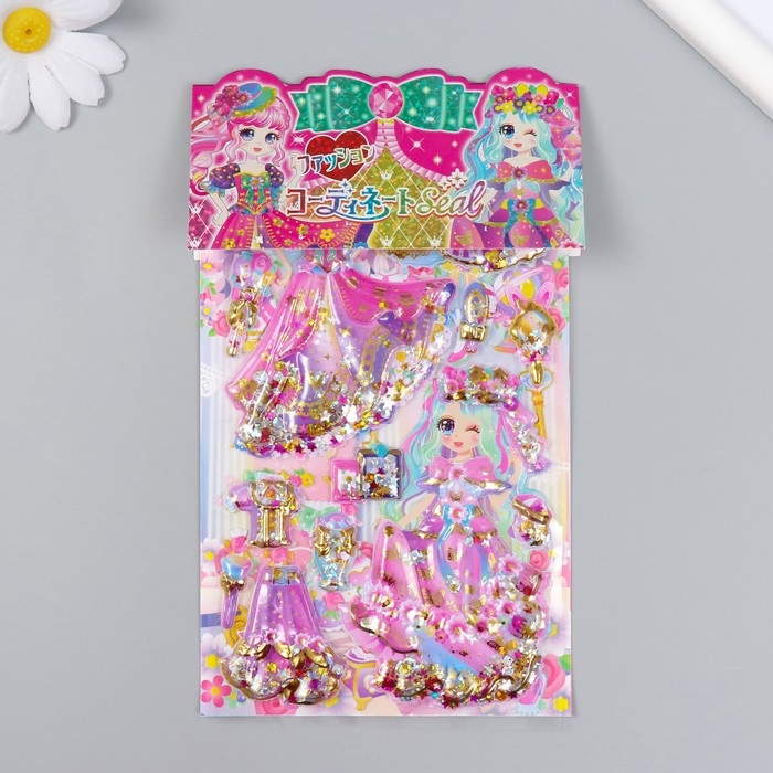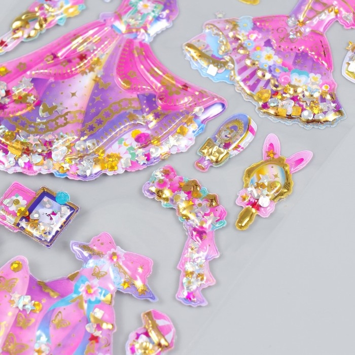 Наклейка пластик 2 листа "Наряды принцессы" с глиттером МИКС 11х22,5 см