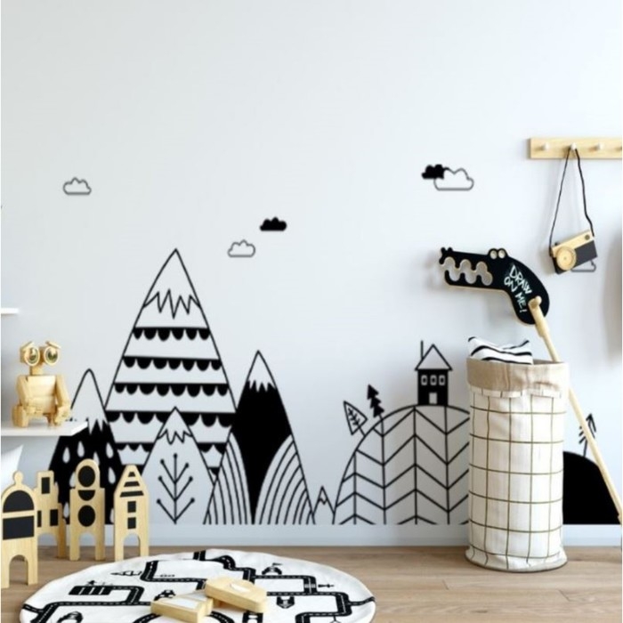 Наклейка пластик интерьерная черная "Горы и домик" 50х70 см