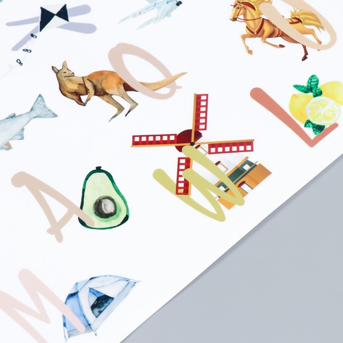 Наклейка пластик интерьерная цветная "Английский алфавит в картинках" 30х60 см