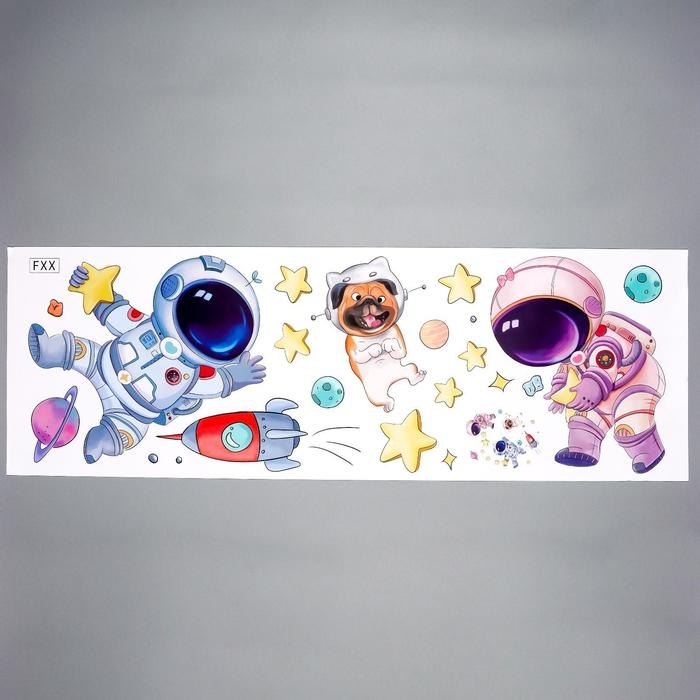 Наклейка пластик интерьерная цветная "Космонавты с собакой" 30х90 см