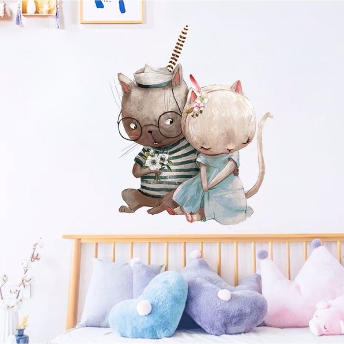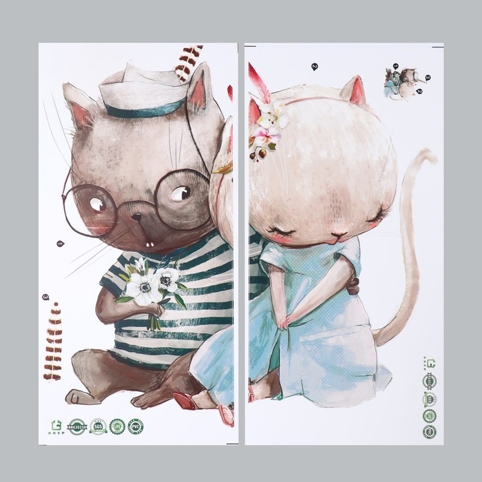 Наклейка пластик интерьерная цветная "Котики-милашки - свидание" набор 2 листа 30х60 см