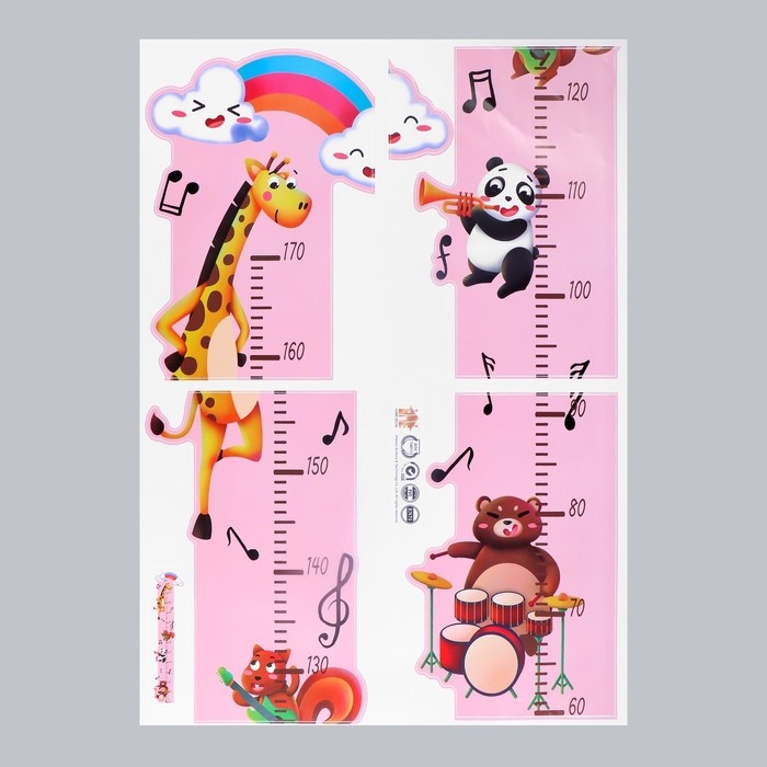 Наклейка пластик интерьерная цветная ростомер "Животные музыканты" 50x70 см