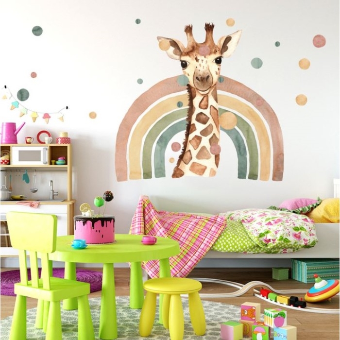 Наклейка пластик интерьерная цветная "Жираф и радуга" 40х90 см