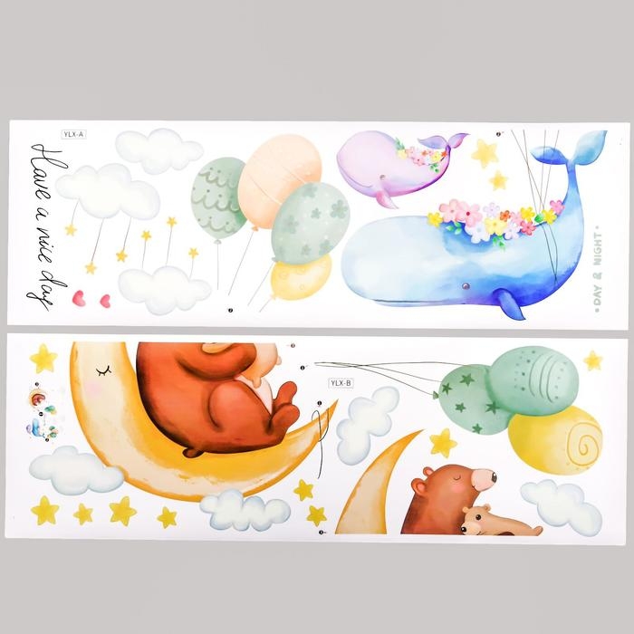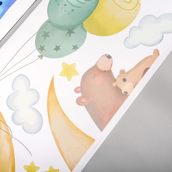 Наклейка пластик интерьерная цветная "Звери и воздушные шарики" 30х90 см набор 2 листа