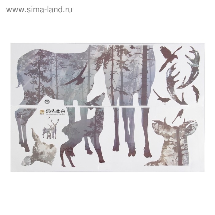 Наклейка пластик интерьерная "Семейство оленей в лесу" 60х90 см