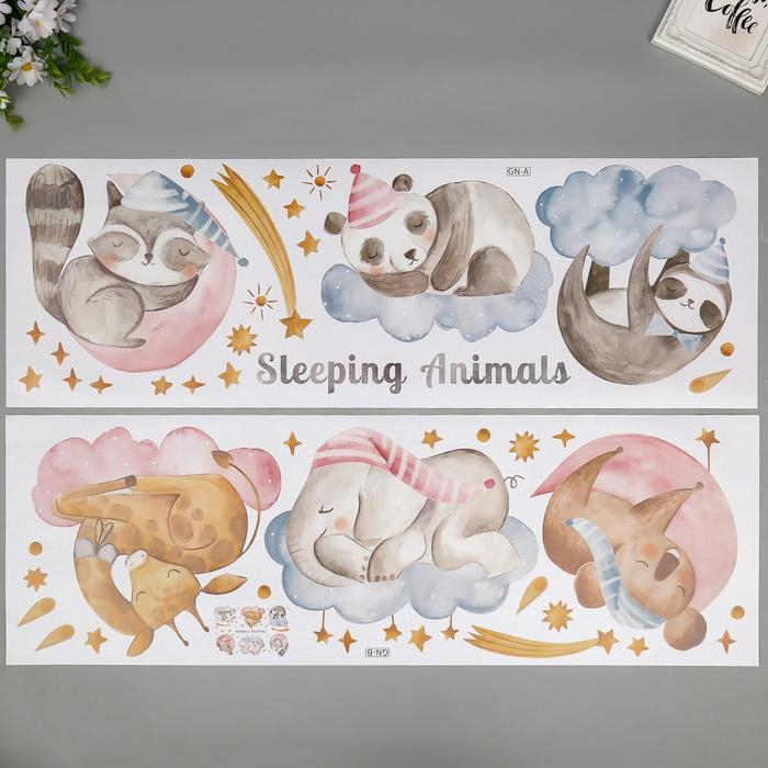 Наклейка пластик интерьерная "Спящие животные" 30х90 см 2 листа