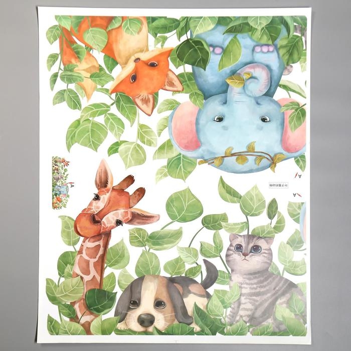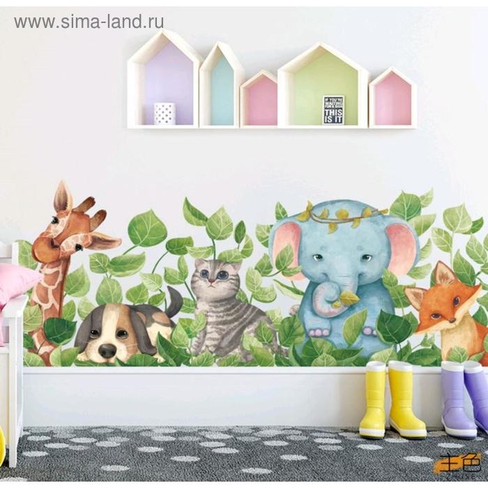 Наклейка пластик интерьерная "Зверята в траве"набор 2 листа 30х75 см