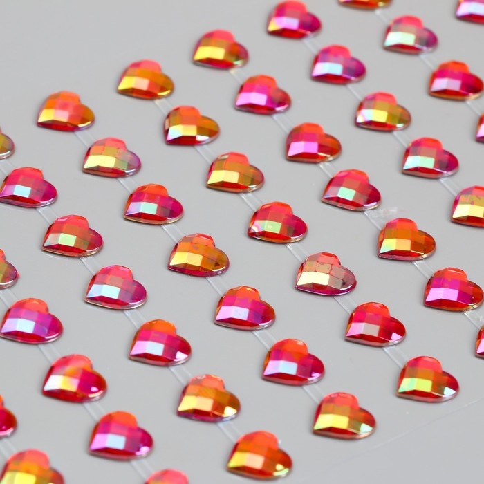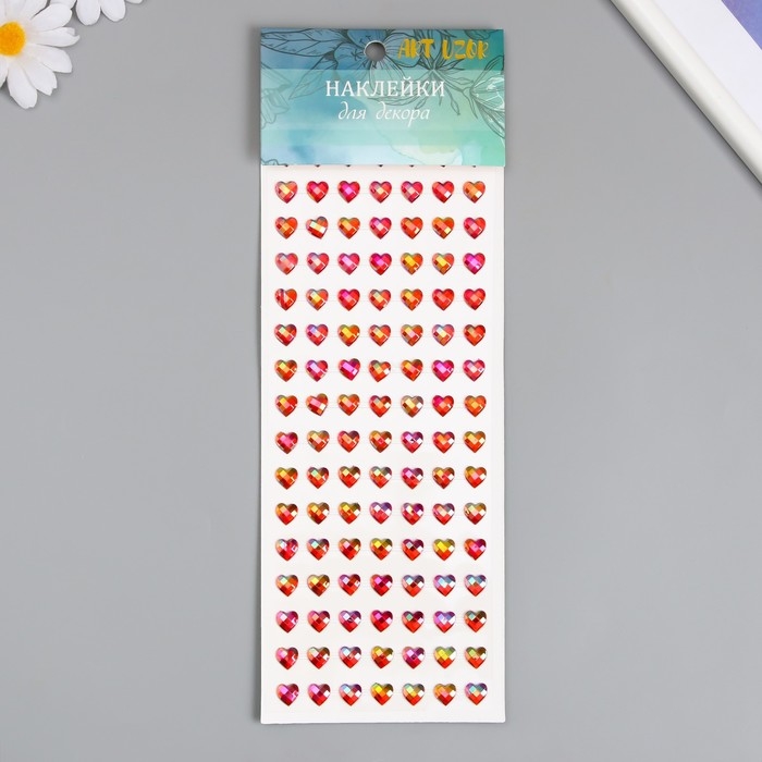 Наклейка пластик стразы "Сердечки с перламутром" 10х27 см