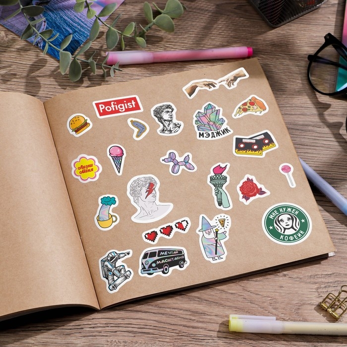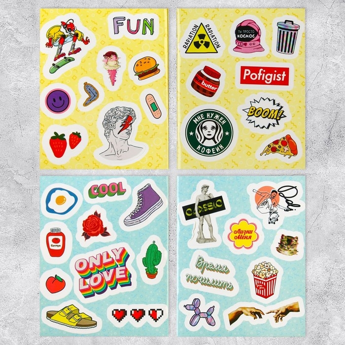 Наклейки детские, альбом 8 листов, Boom vibes, 11 х 13.5 см