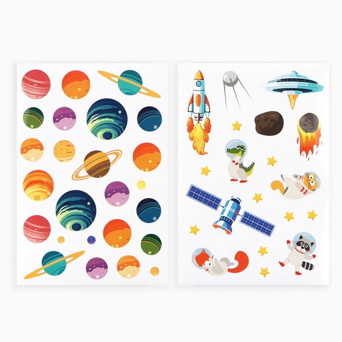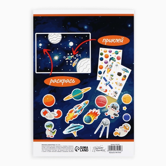 Наклейки детские c раскраской «Космос», 44 шт, 14.5 х 21 см