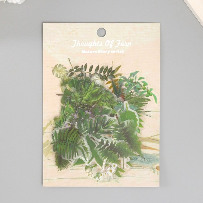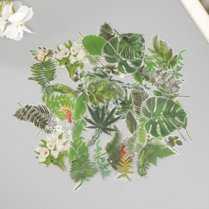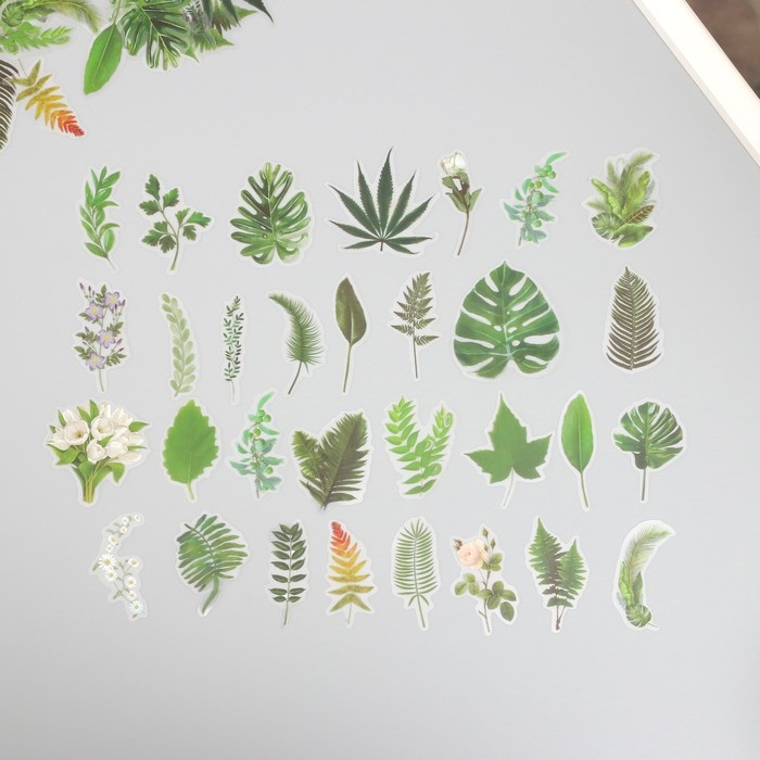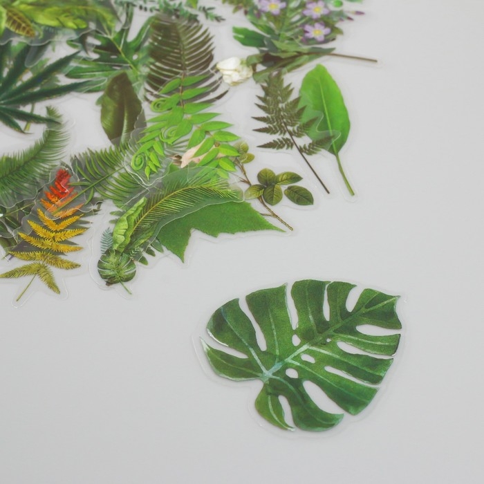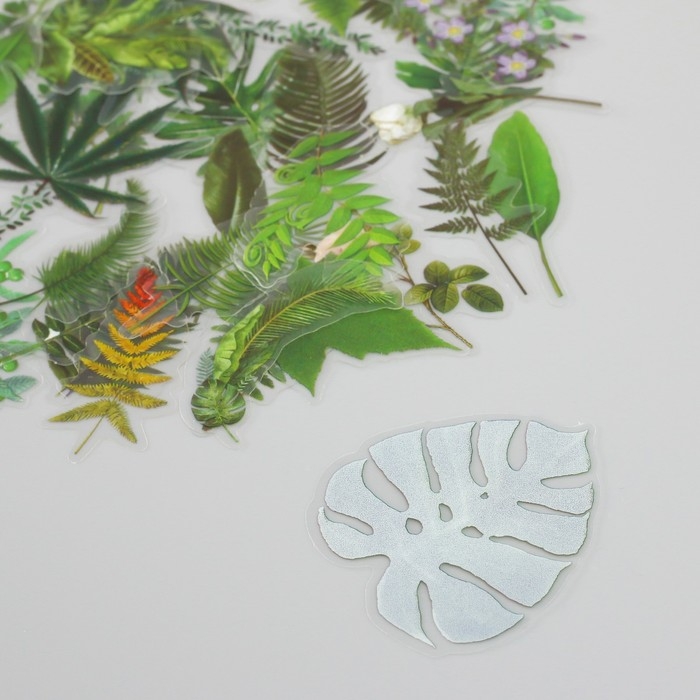 Наклейки для творчества пластик PVC "Зеленые листья" набор 60 шт 10х14 см