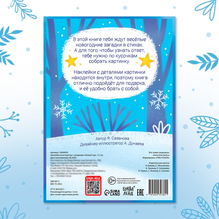 Наклейки конструктор с загадками «Новый год», 12 стр., 60 наклеек