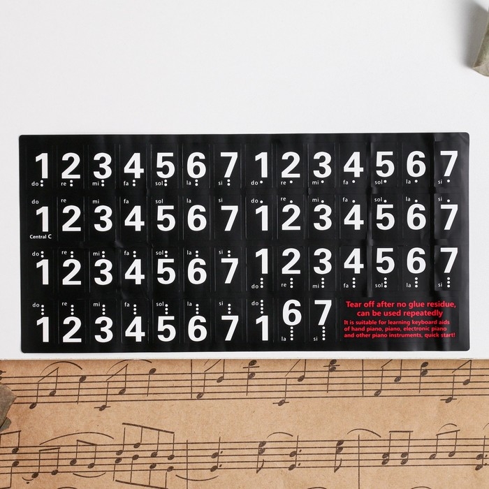 Наклейки на клавиши пианино 4 х 0,8 см, цветные, 88 клавиш, прозрачные