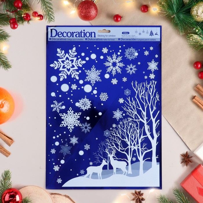 Наклейки на окна "Новогодние" деревья, олени, 38х30 см
