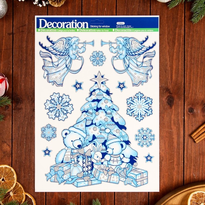 Наклейки на окна "Новогодние" ёлка, ангелочки 41 х 29 см