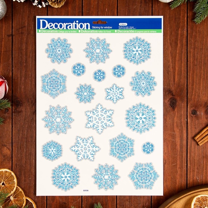 Наклейки на окна "Новогодние" снежинки, 41 х 29 см