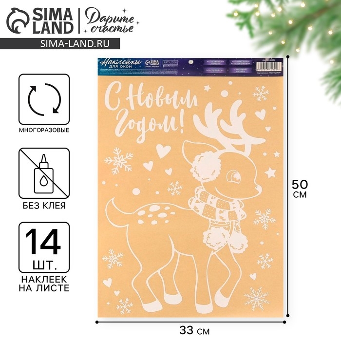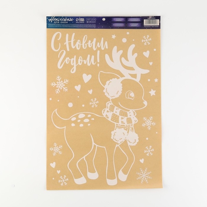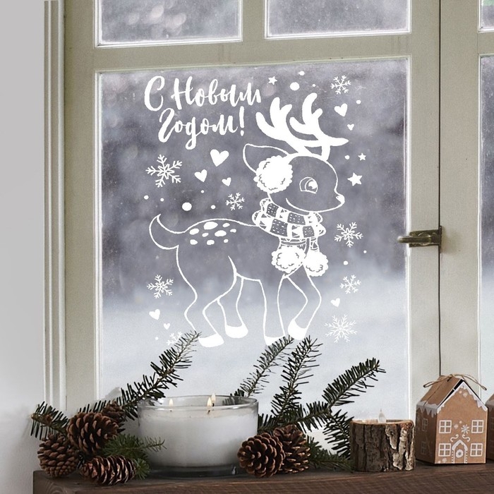 Наклейки новогодние для окон «Зимний малыш», многоразовые, 33 х 50 см, Новый год