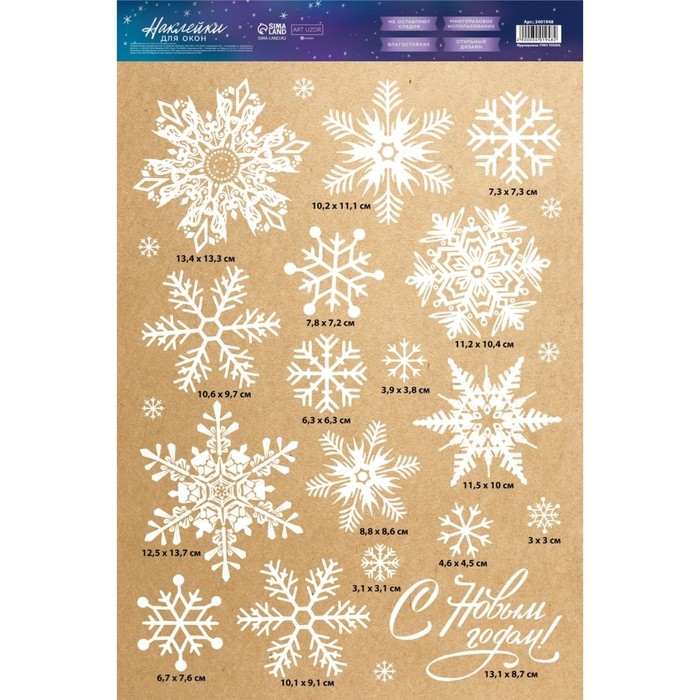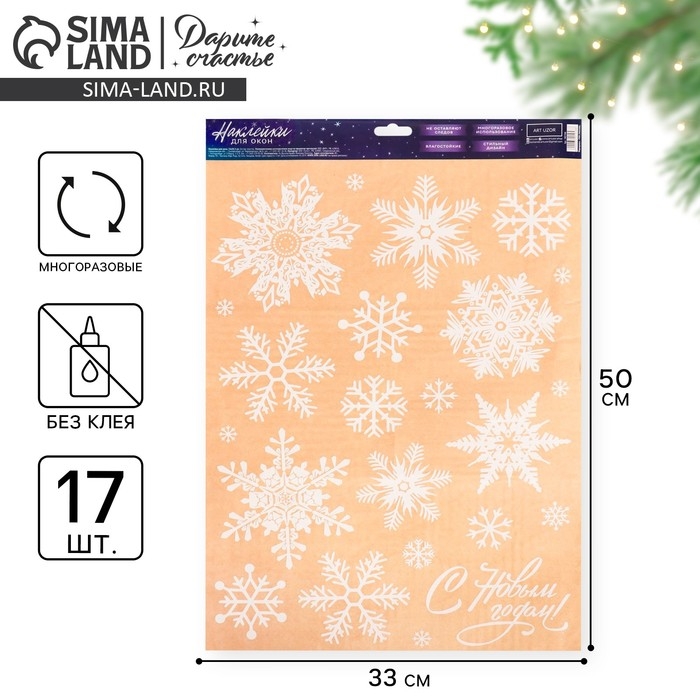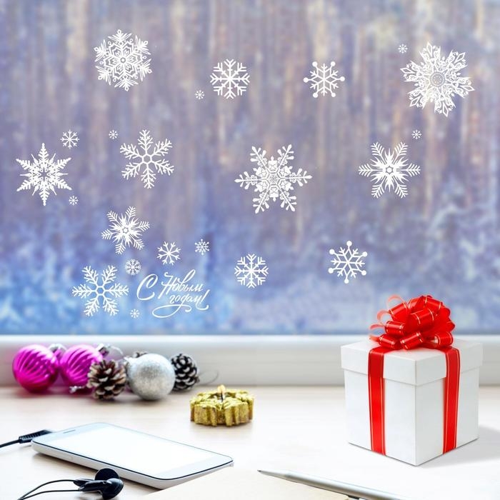 Наклейки новогодние на окна «Мерцающие снежинки», многоразовые, 33 х 50 см, Новый год