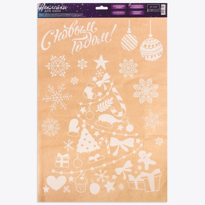 Наклейки новогодние на окна «Праздник у ёлки!», многоразовые, 33 х 50 см, Новый год