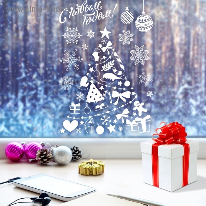 Наклейки на окна, светящиеся "Новогодние" ёлка, 27 х 21 см