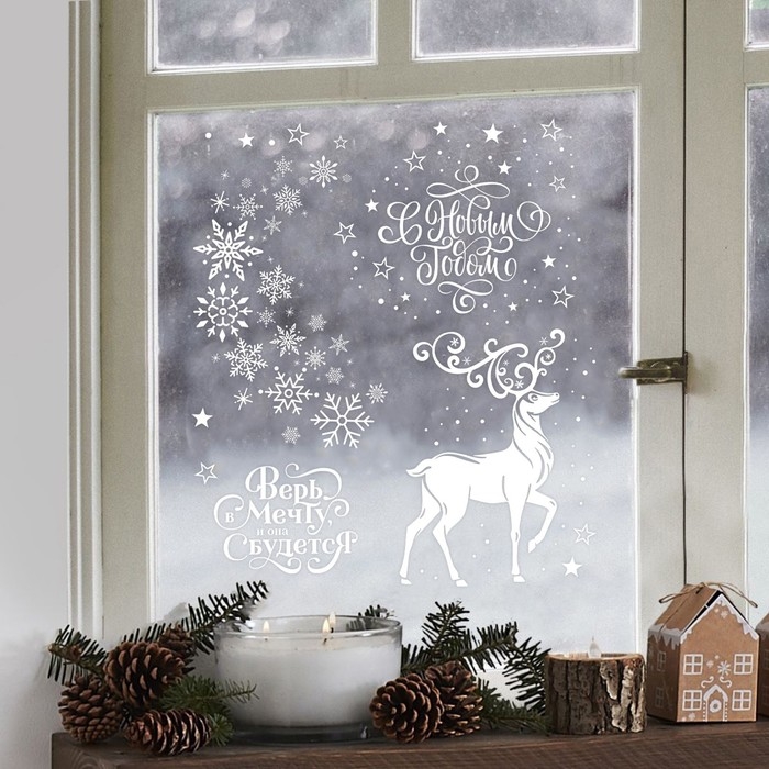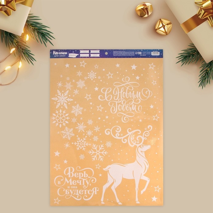Наклейки новогодние на окна «Верь в мечту», многоразовые, 50 х 70 см, Новый год