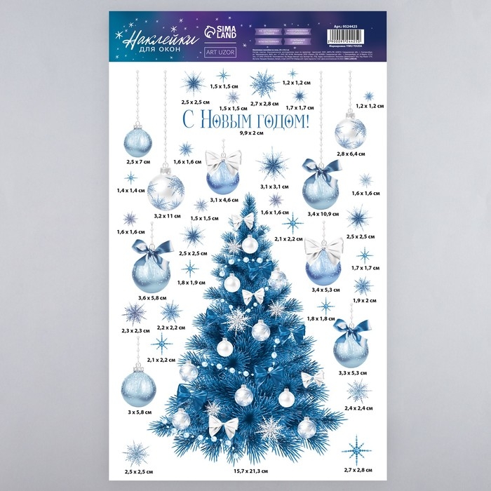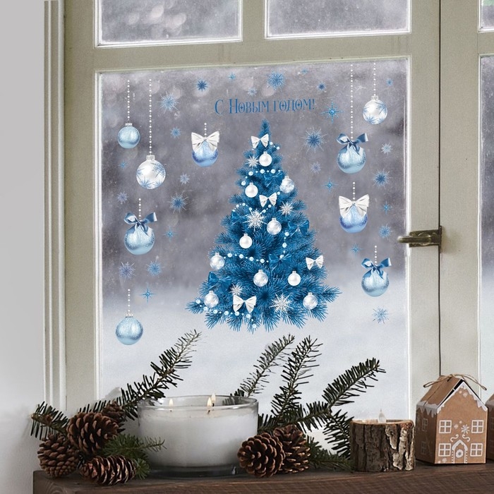 Наклейки новогодние на окна, виниловые «Праздник», многоразовые, 20 х 34.5 см, Новый год