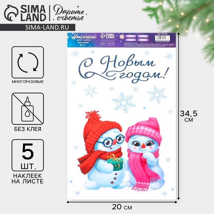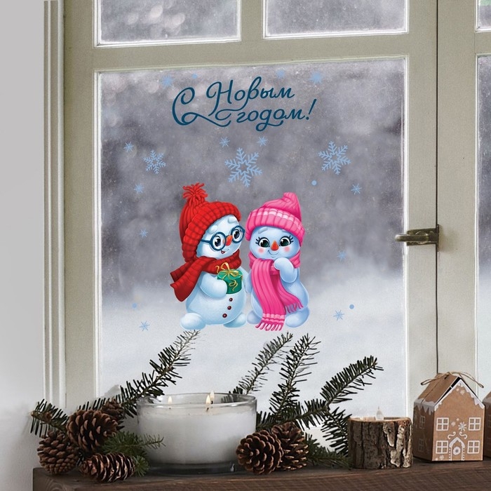 Наклейки новогодние на окна, виниловые «Зимние друзья», многоразовые, 20 х 34,5 см, Новый год