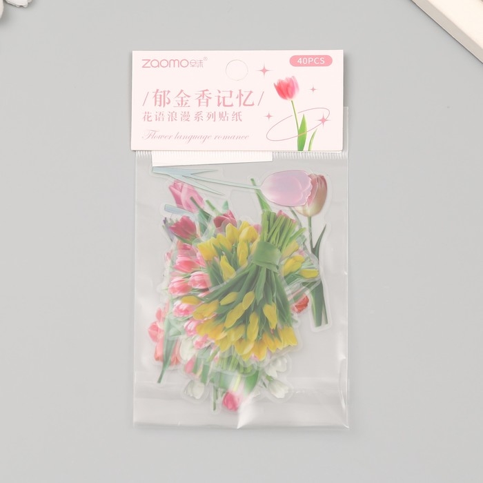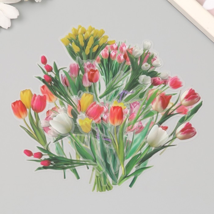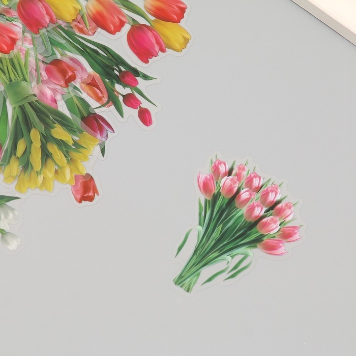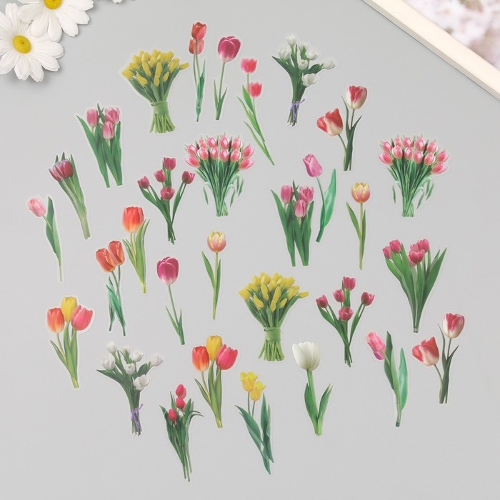 Наклейки пластик "Весенние цветы. Тюльпаны" набор 40 шт 15х8 см
