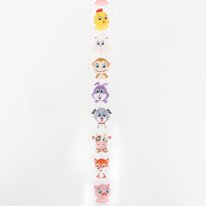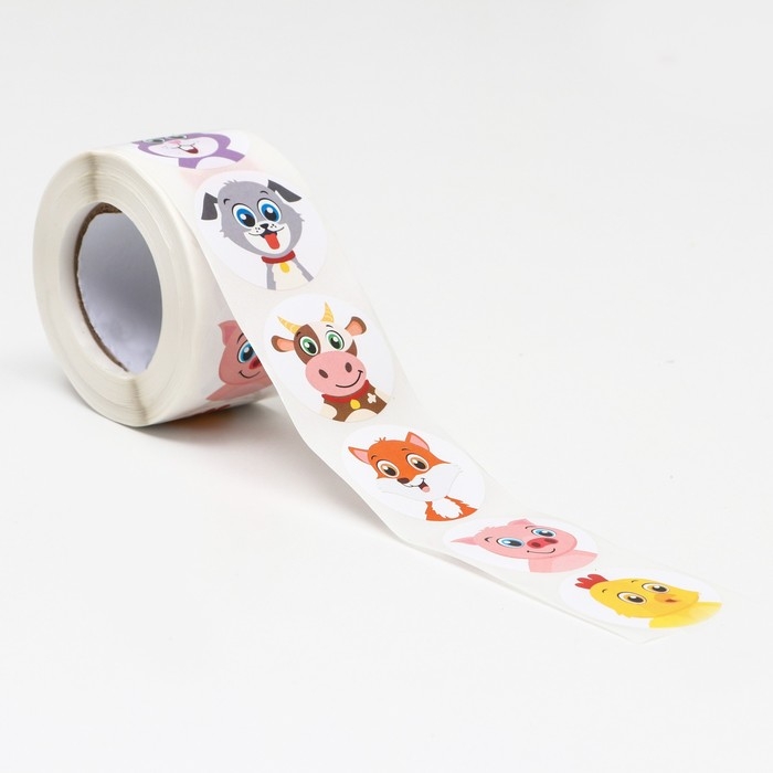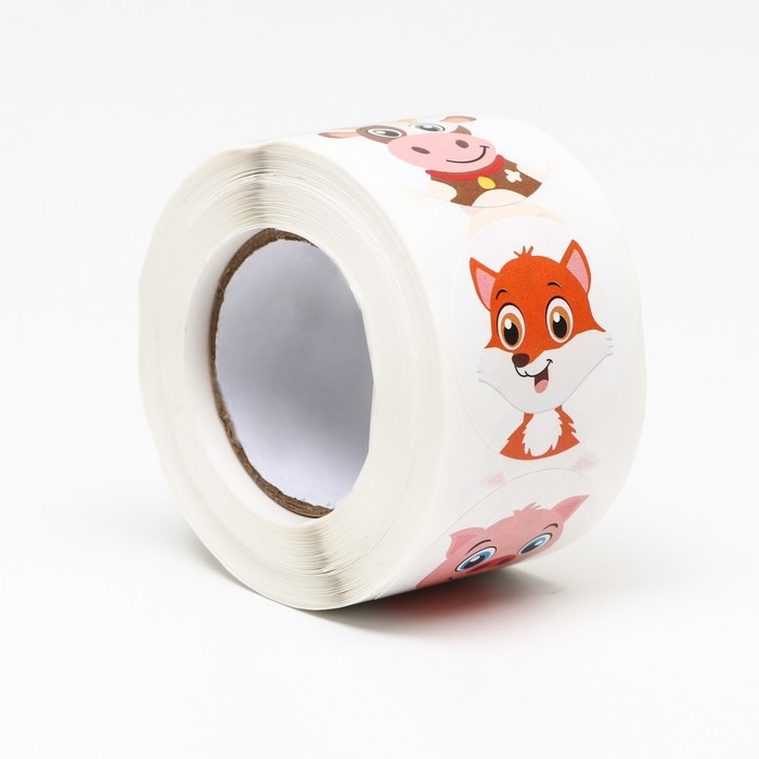 Наклейки в рулоне "Милые зверята",500 шт,3,8 х 3,8 см