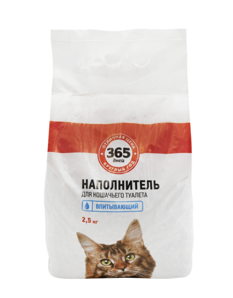 Наполнитель глиняный для кошачьего туалета 365 ДНЕЙ впитывающий, 2,5кг