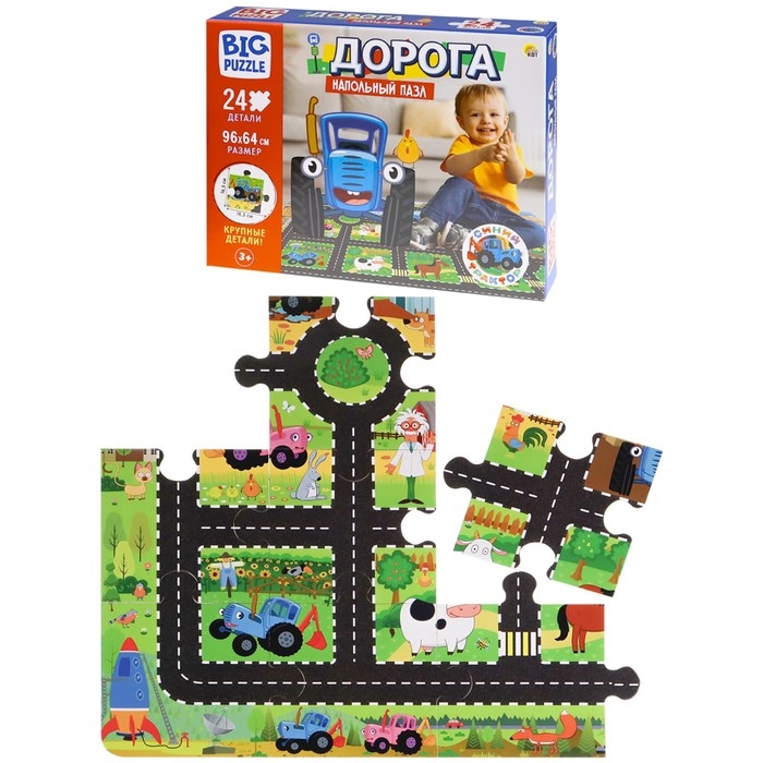 Напольные пазлы гиганты «Дорога», 24 элемента, Синий трактор