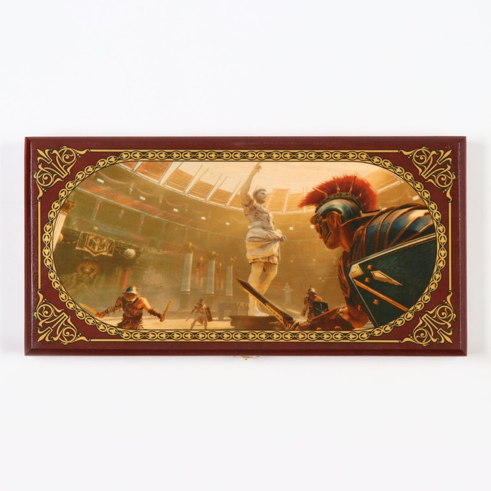 Нарды деревянные большие, настольная игра "Гладиаторы", 40 х 40 см, с шашками
