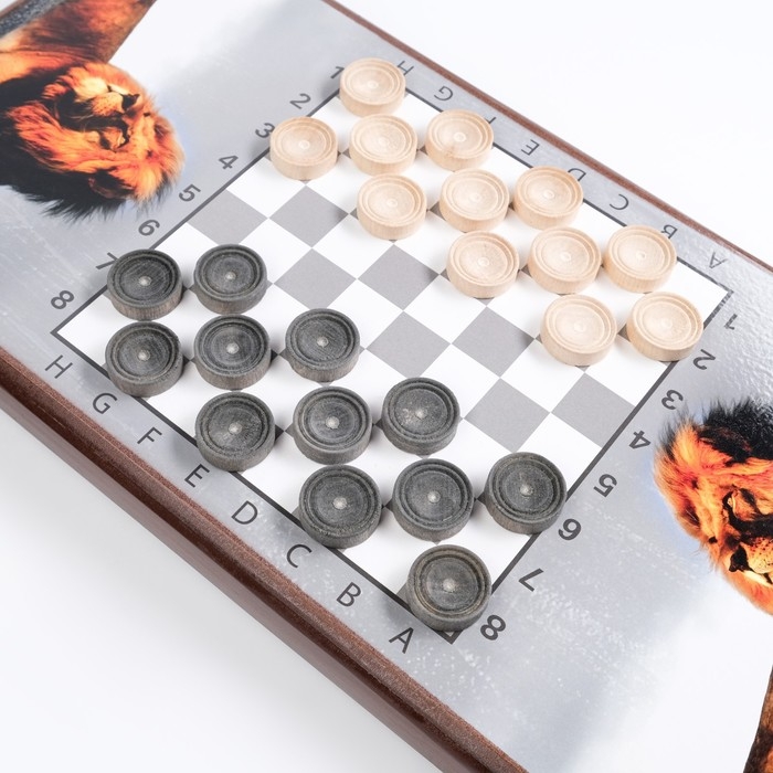 Нарды деревянные большие, настольная игра "Лев", 50 х 50 см, с шашками