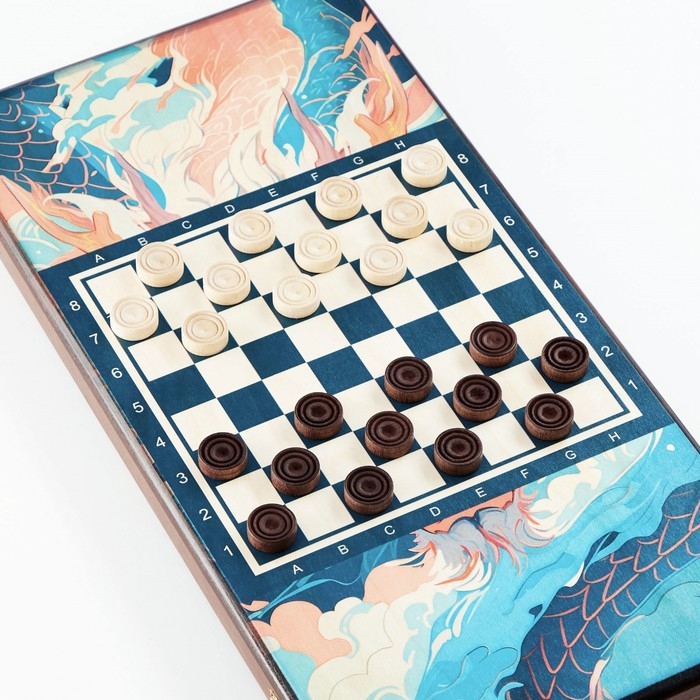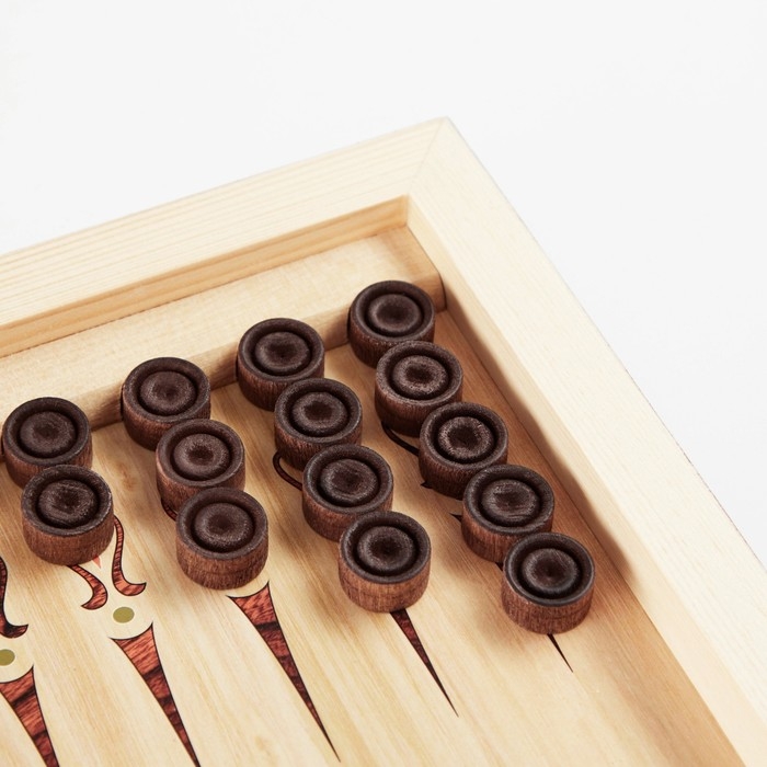 Нарды деревянные большие, настольная игра "Узор", 40 х 40 см, с полем для игры в шашки