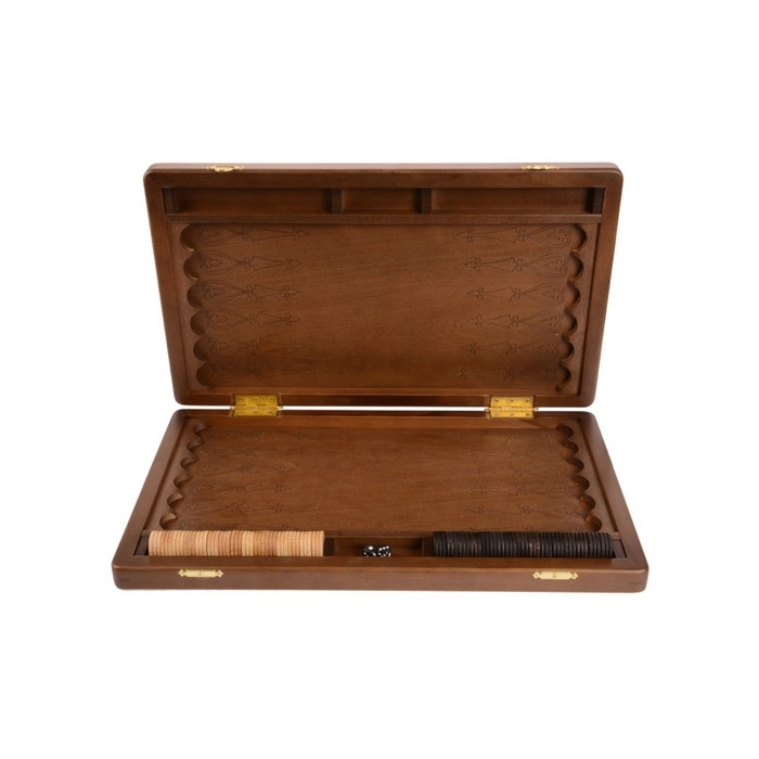 Нарды сочетают в себе высокое качество, изысканный дизайн и превосходную игровую функциональность. Настольные игры, выполненные из дерева, всегда привлекали внимание своей неповторимой эстетикой и долговечностью. Изготовленные из массива бука, они обладают прочной структурой и долговечностью, что позволяет наслаждаться игрой в течение долгих лет. Одной из главных особенностей является резной Георгий Победоносец, который создает потрясающий визуальный эффект. Размер игрового поля составляет 50 х 59 сантиметров, что дает достаточно пространства для комфортной игры. Обработана декоративной патиной, чтобы придать эффект старины и подчеркнуть ее элегантность. Такой подход создает ощущение, будто игра уже имеет свою историю. Нарды покрыты износостойким и безопасным итальянским матовым лаком, который не только придает им блеск, но и защищает от царапин и повреждений. Это гарантирует сохранение красоты и привлекательности игры даже при активном использовании. Фурнитура производится в Германии и отличается высоким качеством и надежностью. Каждая деталь и каждая мелочь проработаны с особым вниманием к деталям, чтобы обеспечить беспроблемную игру и ощущение истинного комфорта.
