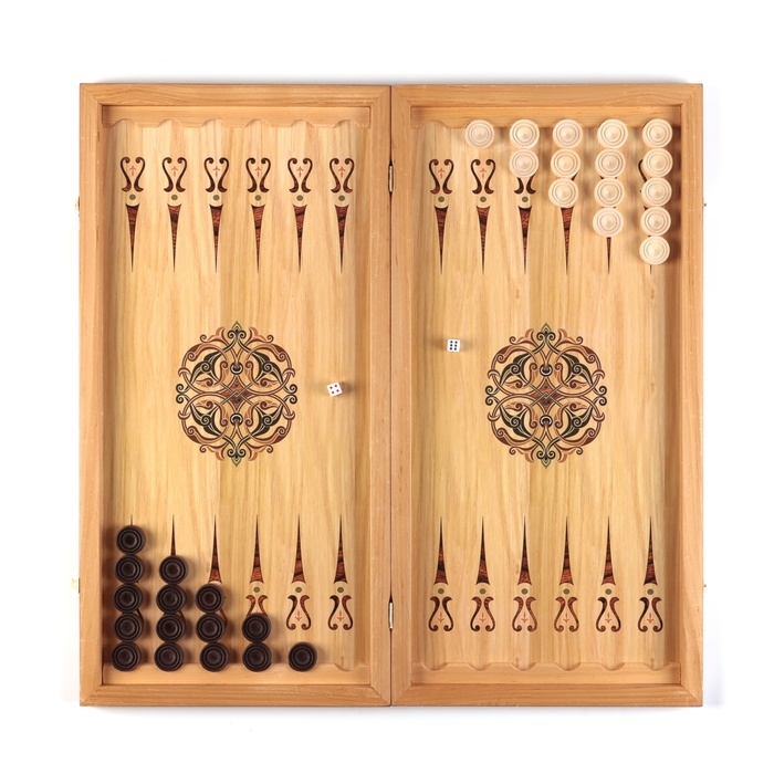 Нарды деревянные большие, настольная игра "Узор", 40 х 40 см, с полем для игры в шашки