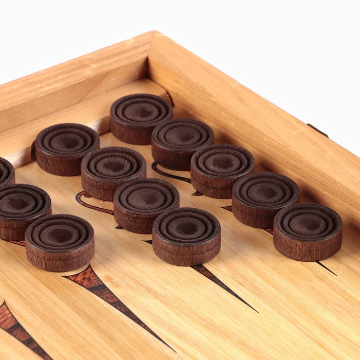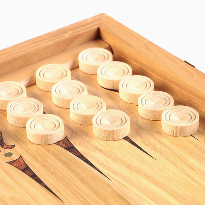 Нарды деревянные большие, настольная игра "Узор", 40 х 40 см, с полем для игры в шашки