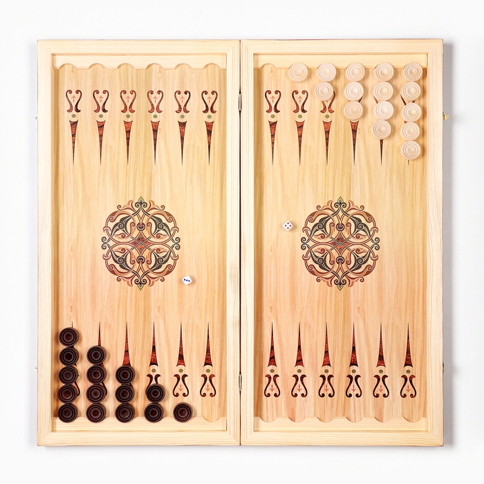 Нарды деревянные большие, настольная игра "Узор", 40 х 40 см, с полем для игры в шашки