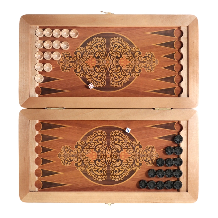 Нарды деревянные большие, настольная игра "Узор", 40 х 40 см, с полем для игры в шашки
