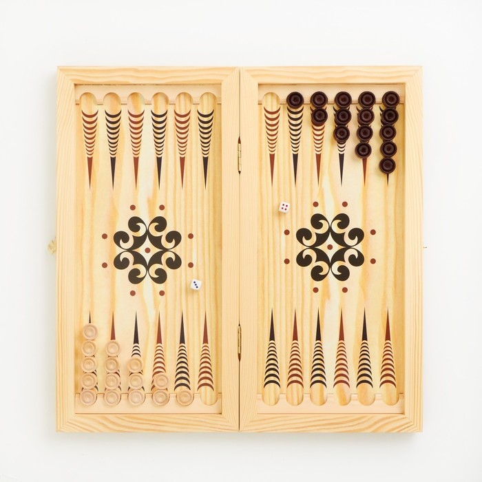 Нарды деревянные большие, настольная игра "Узор", 40 х 40 см, с полем для игры в шашки