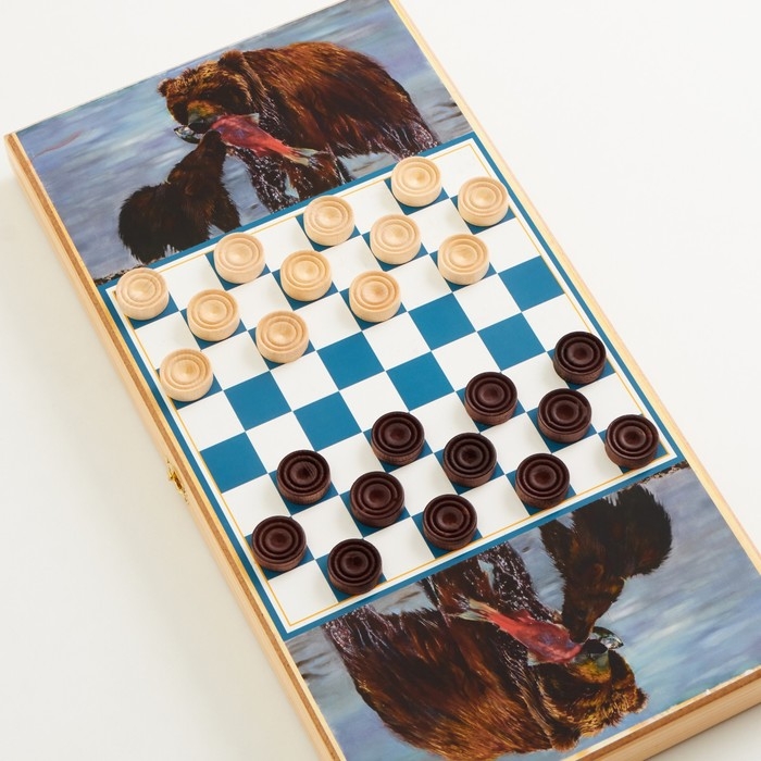 Нарды "Медведь на охоте", деревянная доска 50 х 50 см, с полем для игры в шашки