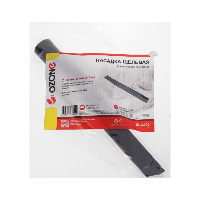 Насадка для пылесоса UN-6232 Ozone представляет собой щелевую насадку, предназначенную для уборки в труднодоступных местах. Она имеет длину 345 мм и подходит для трубки диаметром 32 мм.