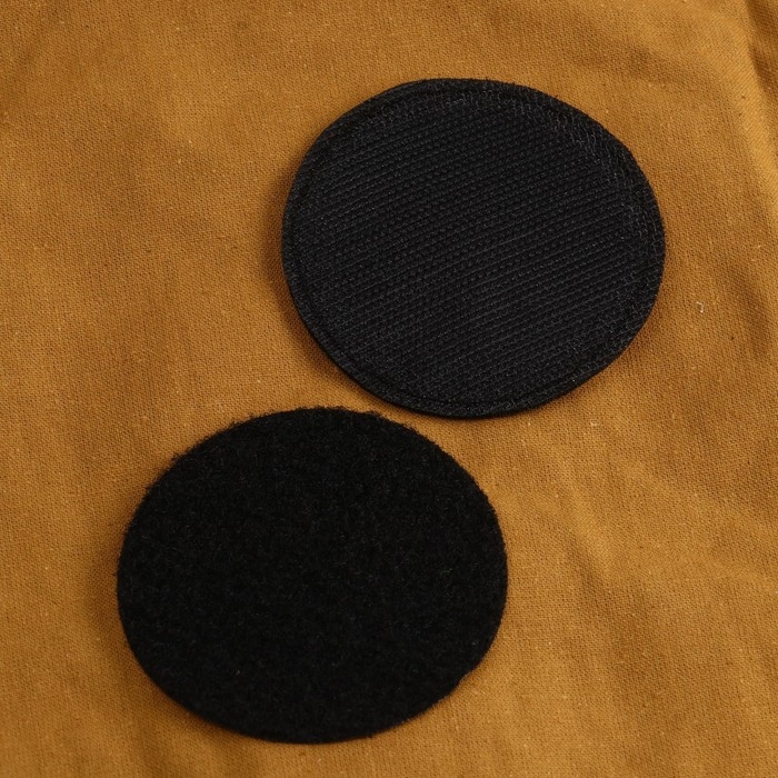 Шеврон уже пришит на липучку с крючками, а в комплекте идёт вырезанная по форме шеврона мягкая часть с петельками, которую можно пришить на одежду, на рюкзак, на кепку, на каску или на сумку, если нет уже готовой площадки.