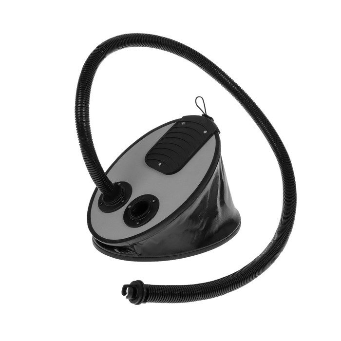 Ножной насос состоит из двух пластин, пружины, которая находится внутри мехов, специальных клапанов, меха различного объема и шланга. Можно использовать как в помещении, так и на природе. Накачать лодку пвх можно при любых условиях, подключение к электросети не нужно.