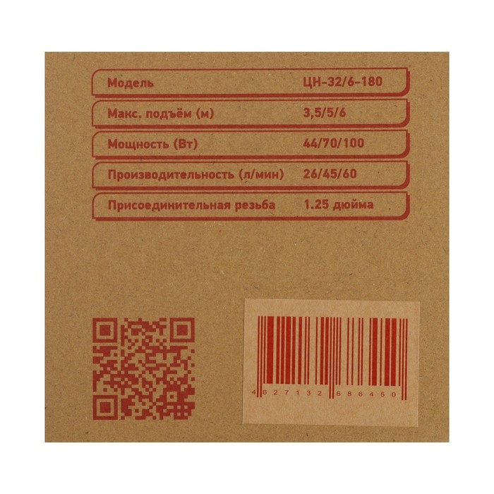 Насос циркуляционный JEMIX WRS-32/6-180, 100/70/44 Вт, напор 6 м, 60/45/26 л/мин, кабель 6 м