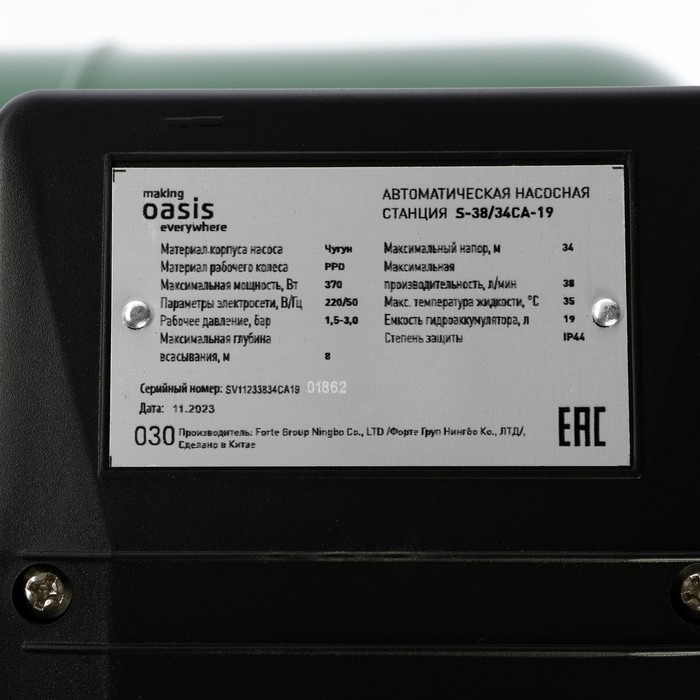 Насосная станция Oasis S-38/34CA-19, 370 Вт, напор 34 м, 38 л/мин, бак 19 л