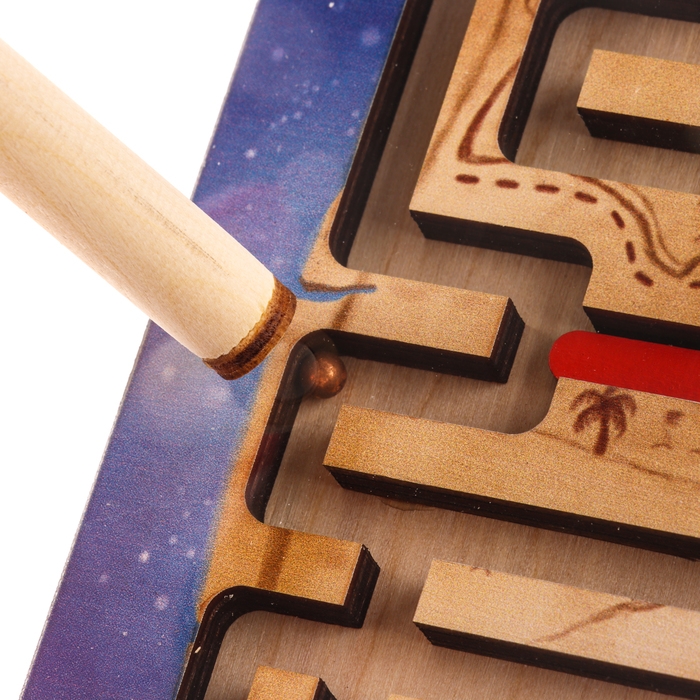 - Игрушка не имеет заострённых, шершавых и мелких деталей. Сверху лабиринт покрыт пластиной, чтобы шарик не выкатился и не попал в руки ребёнка.
