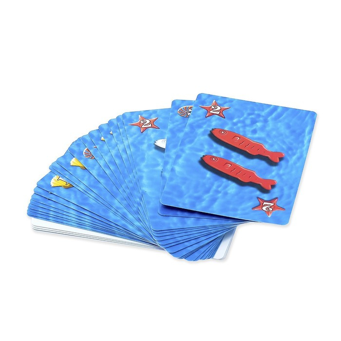 Соберите акулу по инструкции и положите ей в пасть рыбок. Игроки по очереди должны тянуть по карте из колоды и вытаскивать столько рыбок, сколько выпало на карте. Если делать это неосторожно, акула захлопнет свою пасть! Как только это произошло, игра завершилась. Выигрывает тот, у кого больший улов.