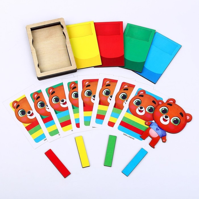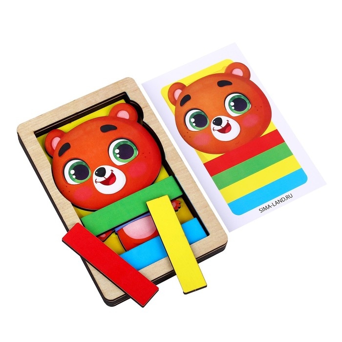 Игра «Повтори по образцу» изготовлена из дерева, а значит, она прочная и безопасная. В набор входят карточки со схемами, яркие фигурные детали и деревянная основа.