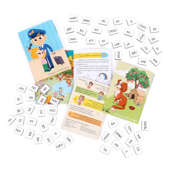 - Далее в пособии вы увидите картинки, по которым нужно составить предложения из деревянных фишек со слогами.
